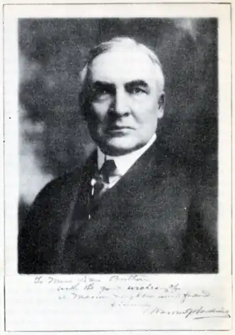 A few days later I obtained from the headquarters my own special photograph of Mr. Harding, duly autographed in the handwriting which was so familiar to me. I remember Miss Harding inspected it closely and said, "Yes, that's his writing all right," indicating that he had not given it to a possible copyist to do for him. Could she have known of the thousands of words her brother had written to me! On the bottom of the photograph he had inscribed, "To Miss Nan Britton, with the good wishes of a Marion neighbor and friend, Sincerely, Warren G. Harding."