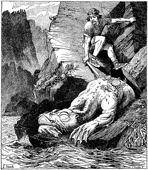 Neither of them could so much as stir it, but as soon as he touched it, away it flew to a distance, though it was ever so big—big as a hill. And when he had flung the stone aside, he spoke a second time to his brothers, saying:
