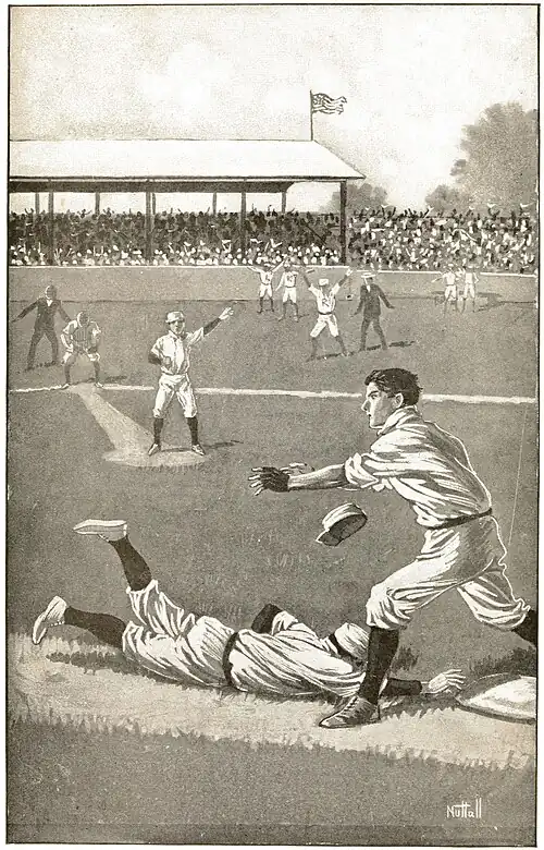 THE GAME WON—PHIL, AMID A RIOT OF CHEERS, KEPT ON TO