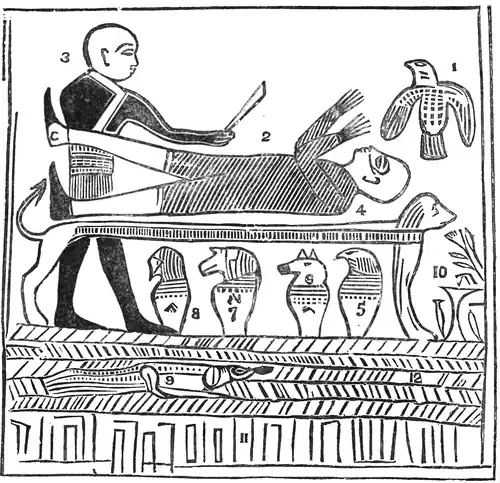 | VIII. The idolatrous god of Korash. | VIII. Amset, with a human head. |