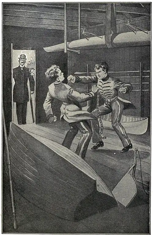 As they drew close to the boathouse they heard loud talking and then a cry of pain.