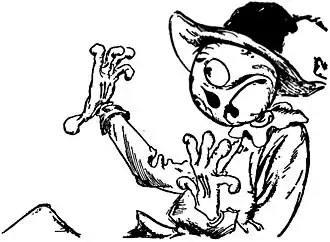 "Was customary," said the Scarecrow firmly. "My dear Tappy Oko, never sound it in my presence again; it is too upsetting." Which was true enough, for one blow of the drum sent the flimsy Scarecrow flying into the air.