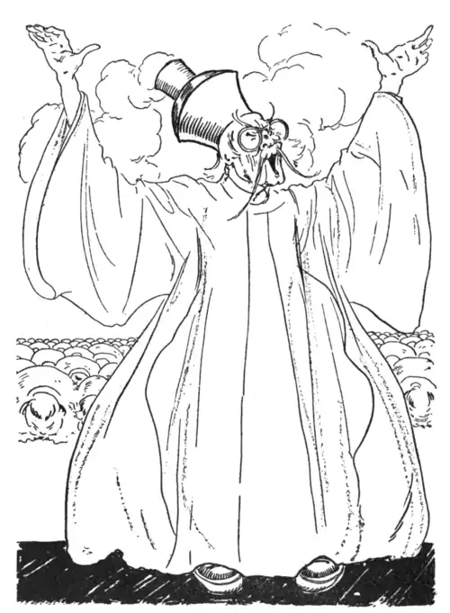 "How?" the Grand Chew Chew proceeded without noticing the Scarecrow's remarks. "Fifty years ago—after your Extreme Highness had defeated in battle the King of the Golden Islands—a magician entered the realm. This magician, in the employ of this wicked king, entered a room in the palace where your Highness lay sleeping and by an act of necromancy changed you to a crocus!"