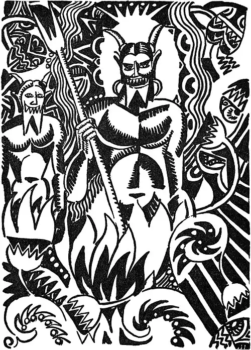 The little devil of a guard then conducted the shoemaker into Prince Lucifer’s presence and the Prince received him with every mark of consideration. The shoemaker told him what Godfather had said and presented him the hunk of meat. Lucifer received it most graciously. Then he said: