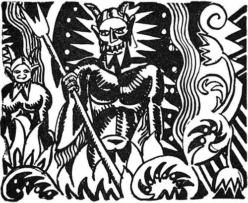 So he tramped down to hell and presented himself at the gate. The little devil who stood on guard greeted him merrily.