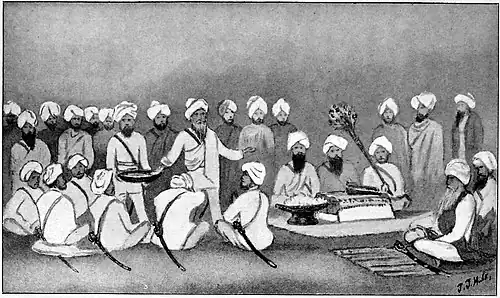 BAPTISING SIKHS ON ADMISSION TO THE KHALSA BROTHERHOOD OF SINGHS.