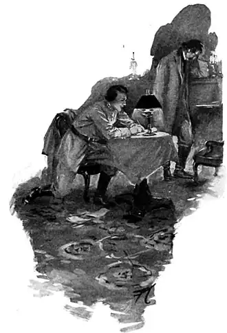 "In a great hurry. Most vital and urgent business has brought me back to see Father. Just learned you were here. There is grave, terrible danger. The rebels are invading. I am with them, of course. Not far away. Must return to-night, at once, to lines, if I ever get there alive. Have a task before me that will undoubtedly see the end of me. In this rig and in this place am open to danger from friend and foe alike. But there is no time to change. Hope for best. Forgive haste, but there is not a moment to lose. Father seems ill and unlike himself. He saw two or three Confederate spies at the house to-day. Always suspect something is wrong after such a meeting. Don't be surprised at state of the house. Unavoidable, but all right. Father will explain where I have hidden this cipher code.