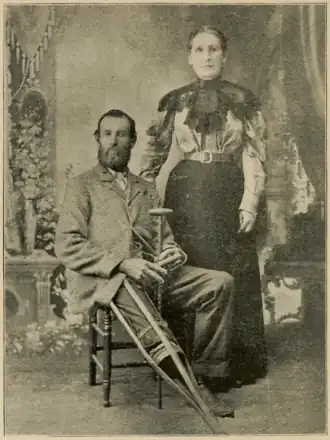 two sons born of this marriage, William Earl and John Arthur Mitchell. The mother died. The children are being raised by their Mitchell grandparents. Zula, the daughter of Reuben and Rebecca Mitchell, is a very industrious young lady, fond of domestic duties. She is not married. Katie Hugh, always called Hugh, mavrried Mr. Chittum; they have one daughter, Zula Josephine Chittum. Reuben Rush, called Rush, is not married. Reuben N. Mitchell is a machinist; was hurt at his work and lost a leg. He now is freighting over the prairies of Western Texas. He and his family are members of the Cumberland Presbyterian Church.