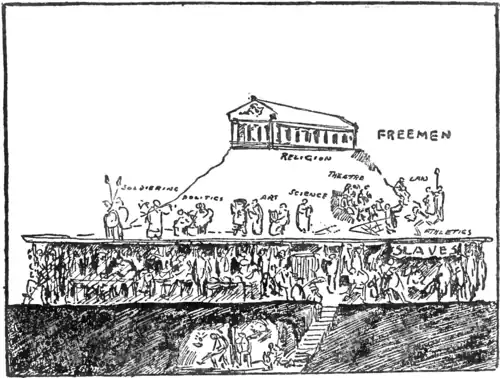 Indeed, ancient Athens resembled a modern club. All the freeborn citizens were hereditary members and all the slaves were hereditary servants, and waited upon the needs of their masters, and it was very pleasant to be a member of the organisation.