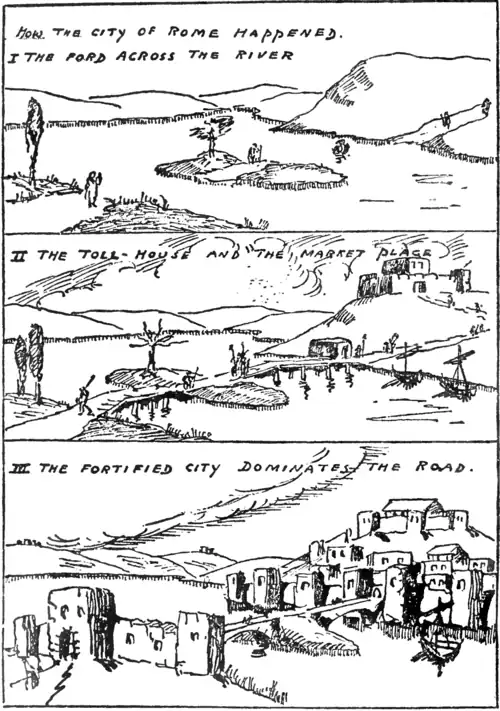 The first serious invasion of this land came from the north. At an unknown date certain Indo-European tribes had managed to find their way through the passes of the Alps and had pushed southward until they had filled the heel and the toe of the famous Italian boot with their villages and their flocks. Of these early conquerors we know nothing. No Homer sang their glory. Their own accounts of the foundation of Rome (written eight hundred years later when the little city had become the centre of an Empire) are fairy stories and do not belong in a history. Romulus and Remus jumping across each other's walls (I always forget who jumped across whose wall) make entertaining reading, but the foundation of the City of Rome was a much more prosaic affair. Rome began as a thousand American cities have done, by being a convenient place for barter and horse-trading. It lay in the heart of the plains