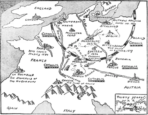 The Thirty Years War which broke out in the year 1618 and which ended with the famous treaty of Westphalia in 1648 was the perfectly natural result of a century of ever increasing religious hatred. It was, as I have said, a terrible war. Everybody fought everybody else and the struggle ended only when all parties had been thoroughly exhausted and could fight no longer.