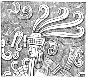 Such are the monuments of the Mayan people, of whom not many facts are to be disentangled from the early legends. Like the traditions of the Mexican tribes, the Mayas tell of a supernatural being, who came from the other side of the Caribbean seas, from a land of shadows. His name was Votan, in the Mayan tradition. He found a people in the extreme of barbarism living in caves, feeding upon the bloody flesh of animals they killed in hunting; he taught them many things, so that by his example, and for generations after he left them by his precepts, they advanced to high civilization. According to his instructions, the only sacrifices offered to the gods were the flowers and incense, sometimes birds and animals. Votan is described as a great warrior, leading his people to one triumph after another. Votan, it would seem, had a companion and disciple called Zamna, to whom also the inhabitants of Yucatan ascribe their ancient progress. It was he, they say, who invented hieroglyphics, and he was the first to attach names to men and things. He was buried, according to the account of the natives, at Izamal, one of the sacred towns of Yucatan, beneath three different pyramids. Under one is his right hand, the head under another, and the heart is beneath the third. A huge head carved in stone has been found at Izamal, which perhaps represents the Prophet Zamna.