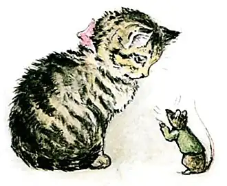 AND because the Mouse has teased Miss Moppet—Miss Moppet thinks she will tease the Mouse; which is not at all nice of Miss Moppet.