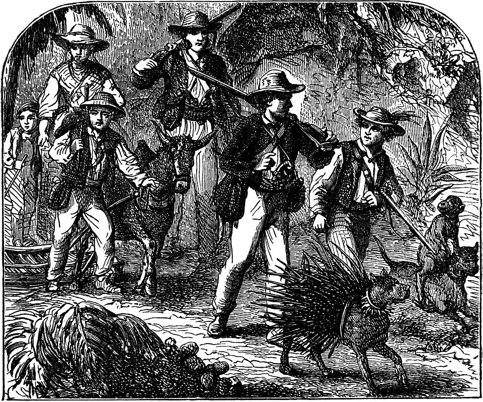 | Fritz and I return to the Calabash wood—Fritz shoots a rutted grouse—We come across wax-berry bushes—Sociable grosbeaks—Fitz captures a parrot—A lecture on ants—Caoutchouc trees—The sago-palm, and the edible worms—Return with sugar-canes to Falconhurst—Candle-making—How to make butter without a churn—Plant trees and adorn Tentholm—Last visit to the wreck—The first ducklings on the island—Falconhurst again—An excursion—We pitch our tent—Fritz and Jack ascend the cocoa-nut trees—Ernest brings us a delicacy—Loss of Grizzle—Jack and I go in pursuit—Giant bamboos—Encounter with buffaloes—The buffalo calf—Find a jackal's lair—Reach our camp—What happened in our absence—Fritz's pet—Sago manufacture—Meet with our sow and her family again—How Ernest tamed the eagle | 166 |