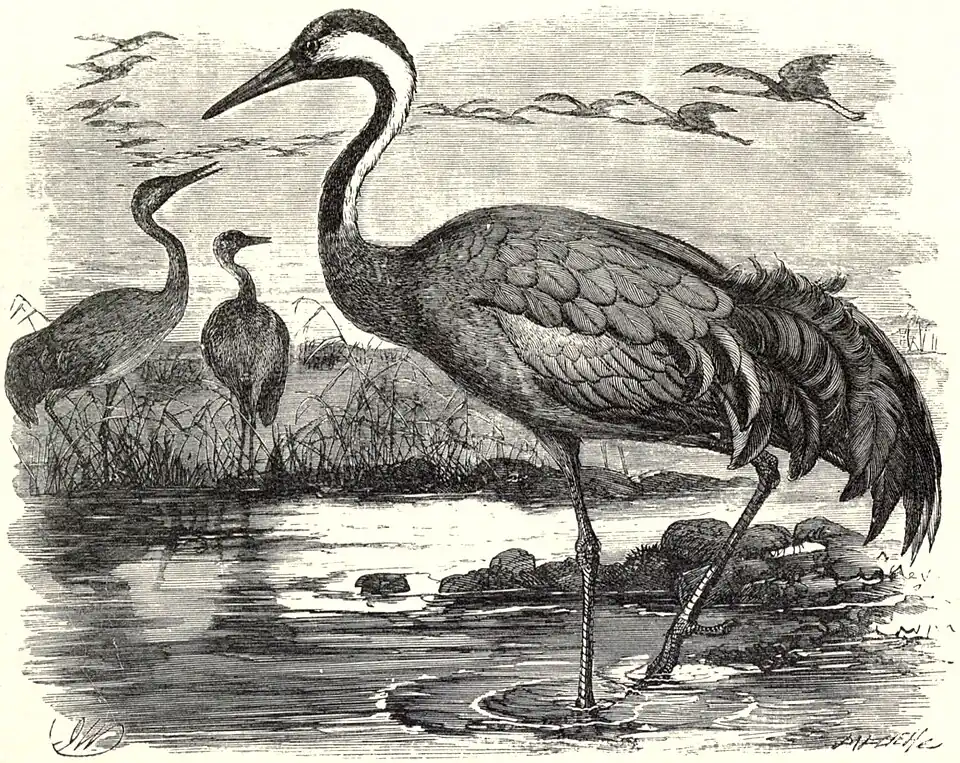 “Presently, and with one accord, they quickened their motion, just as if the band had begun to play a quick march after a slow one, and rapidly descended to earth in a variety of lively ways and near enough for us to see that they must be cranes.