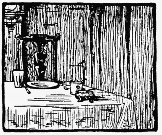 But there were preparations upon the kitchen table which made him shudder. There was an immense empty pie-dish of blue willow pattern, and a large carving knife and fork, and a chopper.