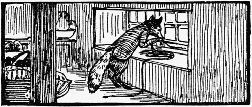 For the next twenty minutes Mr. Tod kept creeping cautiously into the house, and retreating hurriedly out again. By degrees he ventured further in—right into the bedroom. When he was outside the house, he scratched up the earth with fury. But when he was inside—he did not like the look of Tommy Brock's teeth.