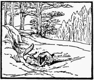 He made his way up the hill; his temper was not improved by noticing unmistakable marks of badger. No one else grubs up the moss so wantonly as Tommy Brock.