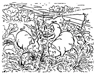 "Not yet, Pig-wig, he will look back." The grocer did so; he saw the two pigs standing stock-still in the middle of the road. Then he looked over at his horse's heels; it was lame also; the stone took some time to knock out after he got to the ploughman.