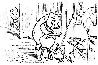 After supper Mr. Piperson consulted an almanac, and felt Pigling’s ribs; it was too late in the season for curing bacon, and he grudged his meal. Besides, the hens had seen this pig.