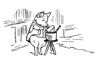 All at once at his elbow, a little voice spoke—"My name is Pig-wig. Make me more porridge, please!" Pigling Bland jumped and looked round.