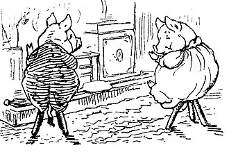 "A funny old mother pig lived in a stye, and three little piggies had she;