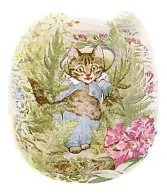 TOM KITTEN was quite unable to jump when walking upon his hind legs in trousers. He came up the rockery by degrees, breaking the ferns, and shedding buttons right and left.