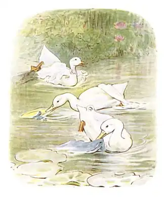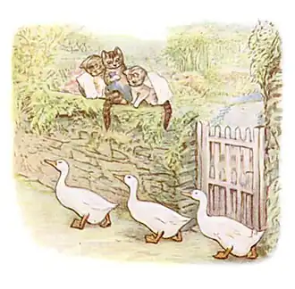 "Now keep your frocks clean, children! You must walk on your hind legs. Keep away from the dirty ash-pit, and from Sally Henny Penny, and from the pig-stye and the Puddle-Ducks."