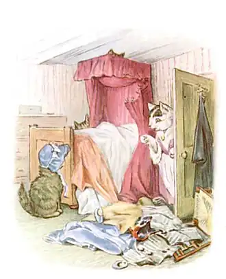 MRS. TABITHA dressed Moppet and Mittens in clean pinafores and tuckers; and then she took all sorts of elegant uncomfortable clothes out of a chest of drawers, in order to dress up her son Thomas.
