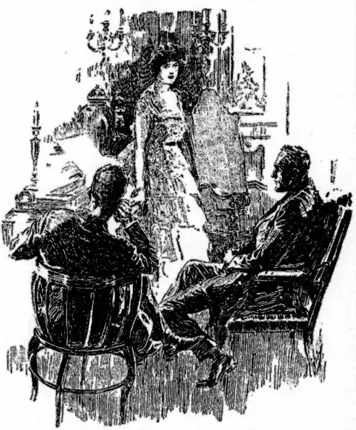 A few moments later we were shown into a charmingly intimate little boudoir, in which Lady Ireton was waiting to receive us. She was a a strikingly handsome brunette, but tonight her face, which normally, I think, possessed rich coloring, was almost pallid, and there was a hunted look in her dark eyes which made me wish to be anywhere rather than where I found myself.
