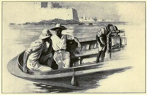 One evening at sunset, on their return trip, as they were under the shadow of the fortress, the engine of the launch broke down. While the black man from Trinidad was diagnosing the trouble, Peter was endeavoring to interest Roddy in the quaint little Dutch Island of Curaçao that lay one hundred miles to the east of them. He chose to talk of Curaçao because the ship that carried him from the States had touched there, while the ship that brought Roddy south had not. This fact irritated Roddy, so Peter naturally selected the moment when the launch had broken down and Roddy was both hungry and peevish to talk of Curaçao.