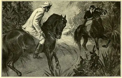 Roddy again turned to the girl and found her closely observing him. He sank back in his saddle and took off his hat. Still scanning the hedges, he pushed his pony beside hers and spoke quickly.
