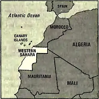 Type: legal status of territory and question of sovereignty unresolved—territory partitioned between Morocco and Mauritania in April 1976, with Morocco acquiring the northern two-thirds including the rich phosphate reserves at Bu Craa. Mauritania, under pressure from the Polisario guerrillas, abandoned all claims to its portion in August 1979; Morocco moved to occupy that sector shortly thereafter and has since asserted administrative control there; OAU-sponsored referendum proposed to resolve situation while guerrilla activities continue into 1982