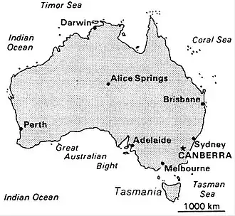 Administrative divisions: 6 states and 2 territories*; Australian Capital Territory*, New South Wales, Northern Territory*, Queensland, South Australia, Tasmania, Victoria, Western Australia