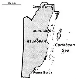 Note: national capital moved 80 km inland from Belize City to Belmopan because of hurricanes; only country in Central America without a coastline on the North Pacific Ocean