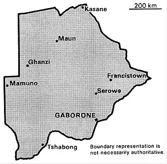 Administrative divisions: 10 districts; Central, Chobe, Ghanzi, Kgalagadi, Kgatleng, Kweneng, Ngamiland, North-East, South-East, Southern; note in addition, there may now be 4 town councils named Francistown, Gaborone, Lobaste, Selebi-Pikwe
