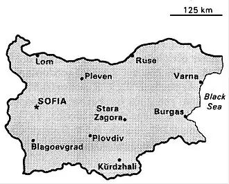 Land boundaries: 1,881 km total; Greece 494 km, Romania 608 km, Turkey 240 km, Yugoslavia 539 km