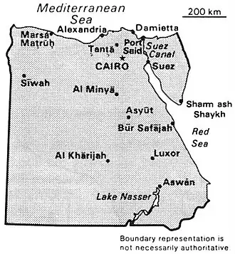 Administrative divisions: 26 governorates (muḩāfaz̧at, singular—muḩāfaz̧ah); Ad Daqahlīyah, Al Baḩr al Aḩmar, Al Buḩayrah, Al Fayyūm, Al Gharbīyah, Al Iskandarīyah, Al Ismā‘īlīyah, Al Jīzah, Al Minūfiyah, Al Minyā, Al Qāhirah, Al Qalyūbīyah, Al Wādī al Jadīd, Ash Sharqīyah, As Suways, Aswān, Asyūţ, Banī Suwayf, Būr Sa‘īd, Dumyāt, Janūb Sīnā’, Kafr ash Shaykh, Maţrūḩ, Qinā, Shamal Sīnā’, Sūhāj