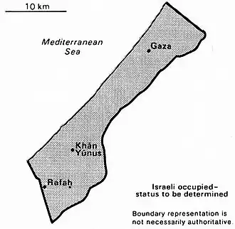 Note: The Gaza Strip is currently governed by Israeli military authorities and Israeli civil administration. It is US policy that the final status of the Gaza Strip will be determined by negotiations among the concerned parties. These negotiations will determine how this area is to be governed.