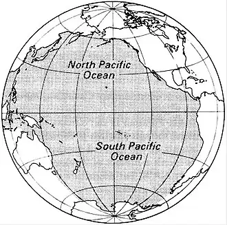 Note: the major choke points are the Bering Strait, Panama Canal, Luzon Strait, and the Singapore Strait; the Equator divides the Pacific Ocean into the North Pacific Ocean and the South Pacific Ocean; ships subject to superstructure icing in extreme north from October to May and in extreme south from May to October; persistent fog in the northern Pacific from June to December is a hazard to shipping; surrounded by a zone of violent volcanic and earthquake activity sometimes referred to as the Pacific Ring of Fire
