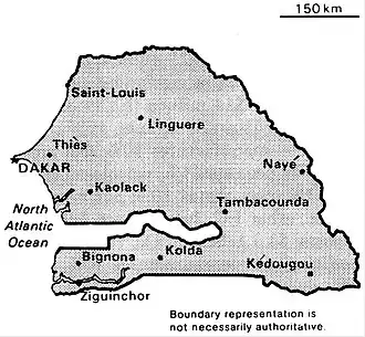 Administrative divisions: 10 regions (régions, singular—région); Dakar, Diourbel, Fatick, Kaolack, Kolda, Louga, Saint-Louis, Tambacounda, Thies, Ziguinchor