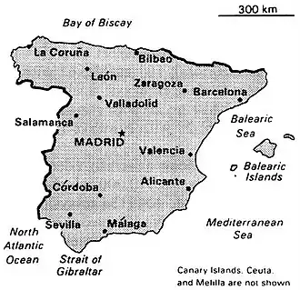 Ports: Algeciras, Alicante, Almería, Barcelona, Bilbao, Cádiz, Cartagena, Castellón de la Plana, Ceuta, El Ferrol del Caudillo, Puerto de Gijón, Huelva, La Coruña, Las Palmas (Canary Islands), Mahón, Málaga, Melilla, Rota, Santa Cruz de Tenerife, Sagunto, Tarragona, Valencia, Vigo, and 175 minor ports