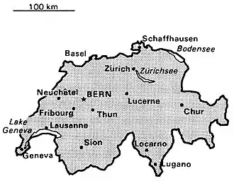 Administrative divisions: 26 cantons (cantons, singular canton—in French; cantoni, singular—cantone in Italian; kantone, singular—kanton in German); Aargau, Ausser-Rhoden, Basel-Landschaft, BaselStadt, Bern, Fribourg, Genève, Glarus, Graubünden, Inner-Rhoden, Jura, Luzern, Neuchâtel, Nidwalden, Obwalden, Sankt Gallen, Schaffhausen, Schwyz, Solothurn, Thurgau, Ticino, Uri, Valais, Vaud, Zug, Zürich