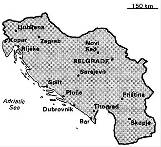Administrative divisions: 6 socialist republics (socijalističke republike, singular—socijalistička republika); Bosna I Hercegovina, Crna Gora, Hrvatska, Makedonija, Slovenija, Srbija; note—there are two autonomous provinces (autonomne pokajine, singular—autonomna pokajina) named Kosovo and Vojvodina within Srbija