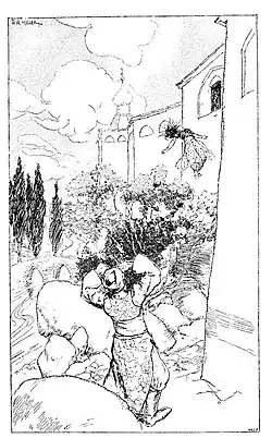 'When near the village we discovered that all its inhabitants, particularly the women and children, had been watching our steps down the slope, anxious to know whether Mariam had been retaken; and when they saw her safe, there was no end to their expressions of joy. The story of her flight and of her rescue was soon told, and carried from one mouth to another with such rapidity and with such additional circumstances, that at length it came out that she had been carried away by a giant, who had an iron head, claws and feet of steel, and scales on his back, mounted upon a beast that tore up the ground at every bound, and made noises in its rapid course over the hills like the discharges of artillery. They added to this, that of a sudden an angel, in the shape of a ploughboy, descended from the top of a high mountain in a cloud, and as he wielded a sword of fire in his hand, it frightened the horse, threw Mariam to the ground, and reduced the giant and his steed to ashes: for when she recovered from her fright, they were no longer to be seen. I was pointed out as the illustrious ploughboy, and immediately the attention of the whole village was turned towards me; but, unfortunately, when about receiving nearly divine honours, a youth, whom I had frequently met tending cattle in the mountains, recognized me, and said, "He is no angel—he is Yûsûf, the son of Coja Petros, of Gavmishlû"; and thus I was reduced to my mortality once more. However, I was treated with the greatest distinction by everybody, and Mariam's relations could not sufficiently testify their gratitude for the service I had rendered. But, all this time, love was making deep inroads in my heart. I no longer saw Mariam unveiled, that happy moment of my life had gone by; but it had put the seal to my future fate. "No," said I to myself, "nothing shall separate me from that beautiful maid; our destinies forthwith are one; Heaven has miraculously brought us together, and nothing but the decrees of Providence shall disunite us, even though to gain her I should be obliged to adopt the violence of the Persian, and carry her away by force." We met now and then, Mariam and I; and although our words were few, yet our eyes said much, and I knew that my passion was returned. Oh, how I longed to have met and engaged another, aye, twenty more Persians, to prove my love! but I recollected that I was nothing but a poor Armenian, belonging to a degraded and despised nation, and that the greatest feat which I could ever expect to perform would be to keep the wolf from my father's flocks, or to drive the marauder from our fields.