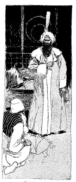 On the very same night of the tailor's attendance, the sultan had given a secret order for taking off the head of the Aga of the Janissaries (the fomenter of all the disturbances which had lately taken place among his corps, and consequently their idol); and so anxious was he about its execution, that he had ordered it to be brought to him the moment it was off. The man entrusted with the execution, upon entering the room where he had been directed to bring the head, seeing some one seated, naturally took him for the sultan, and, without daring to look up, immediately placed the burden at his feet, with the prostrations which we have ready described as having been performed before the tailor. The sultan, who not a minute before had taken away the bundle containing the dervish's dress, had done so in the intention of deceiving his slave Mansouri himself; so anxious was he of being unknown in his new disguise even to him; and intended to have substituted another in its stead; but not calculating either upon the reception of the head, or upon Mansouri's immediate return to the tailor, he was himself completely puzzled how to act when he found the tailor was gone, led off by his slave. To have sent after them would have disconcerted his schemes, and therefore he felt himself obliged to wait Mansouri's return, before he could get an explanation of what had happened; for he knew that they would not have gone away without the dress, and that dress he had then in his possession. In the meanwhile, anxious and impatient to know what had become of the expected head, he sent for the officer who was entrusted with the execution; and the astonishment of both may be imagined when an explanation took place.