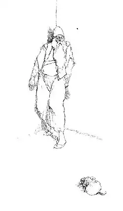 Upon which he seized it, and hiding it under his coat, ran with it down the street to where the dead body of a Jew lay extended, with its head placed immediately between its legs.