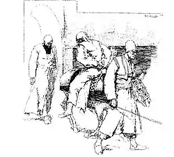 Nadân's beard was ripped from his chin with as much ease by the ferashes as if they were plucking a fowl; and then, with abundance of blows to hasten our steps, they seized upon the first ass which they met, and mounted the priest, the once proud and ambitious priest, upon it, and paced him slowly through the streets. I walked mournfully behind, having had my mollah's shawl torn from my head, and my hirkeh (cloak) from my back.