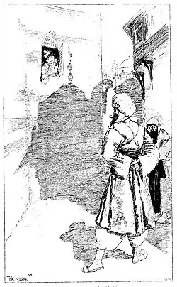I had lived in this manner for some time, when for three successive evenings, towards the dusk, retiring from my coffee-house, I remarked an old woman standing at the corner of a small street that nearly faced it. She always gazed intensely at me, seemed desirous to speak, looked up every now and then at the latticed windows of the house, at the foot of which she had taken post, and then allowed me to pass on.