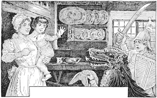 Here, at any rate, lived and stopped at home Squire Brown, J. P. for the county of Berks, in a village near the foot of the White Horse range. And here he dealt out justice and mercy in a rough way, and begat sons and daughters, and hunted the fox, and grumbled at the badness of the roads and the times. And his wife dealt out stockings, and calico shirts, and smock frocks, and comforting drinks to the old folks with the "rheumatiz," and good counsel to all; and kept the coal and clothes clubs going for yuletide, when the bands of mummers came round, dressed out in ribbons and colored paper caps, and stamped round the squire's kitchen, repeating in true singsong vernacular the legend of St. George and his fight, and the ten-pound doctor who plays his part at healing the saint—a relic, I believe, of the old middle-age mysteries. It was the first dramatic representation which greeted the eyes of little Tom, who was brought down into the kitchen by his nurse to witness it, at the mature age of three years. Tom was the eldest child of his parents, and from his earliest babyhood exhibited the family characteristics in great strength. He was a hearty, strong boy from the first, given to fighting with and escaping from his nurse, and fraternizing with all the village boys, with whom he made expeditions all round the neighborhood. And here, in the quiet, old-fashioned country village, under the shadow of the everlasting hills, Tom Brown was reared, and never left it till he went first to school when nearly eight years of age—for in those days change of air twice a year was not thought absolutely necessary for the health of all her Majesty's lieges.